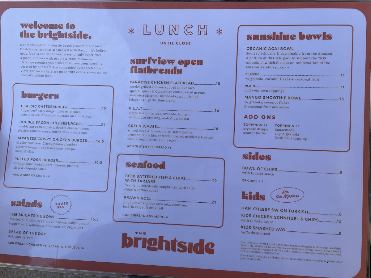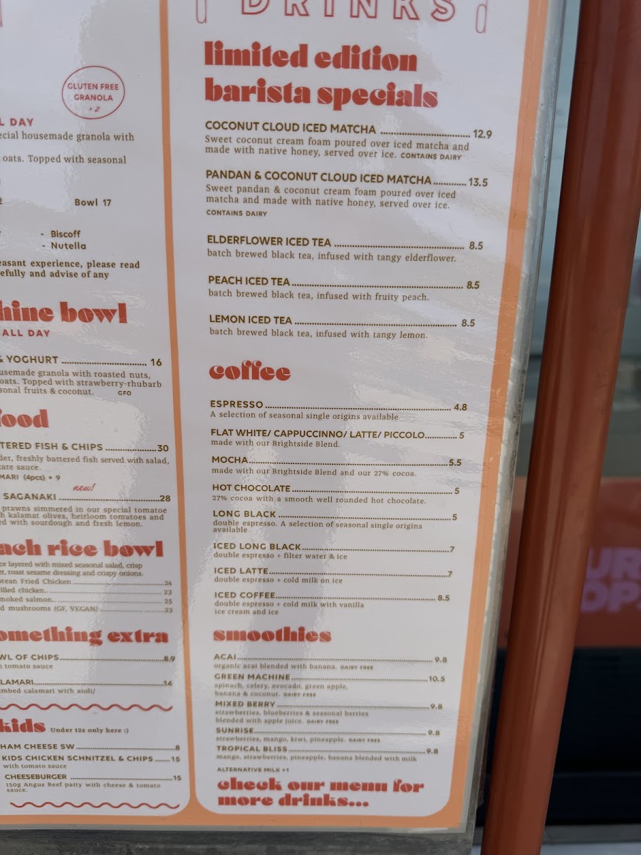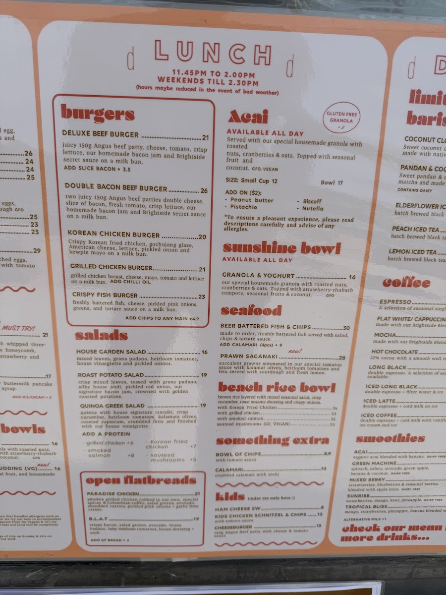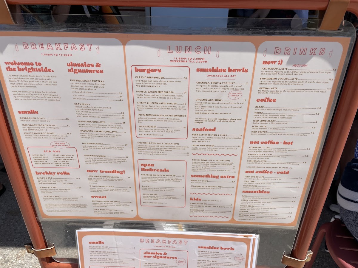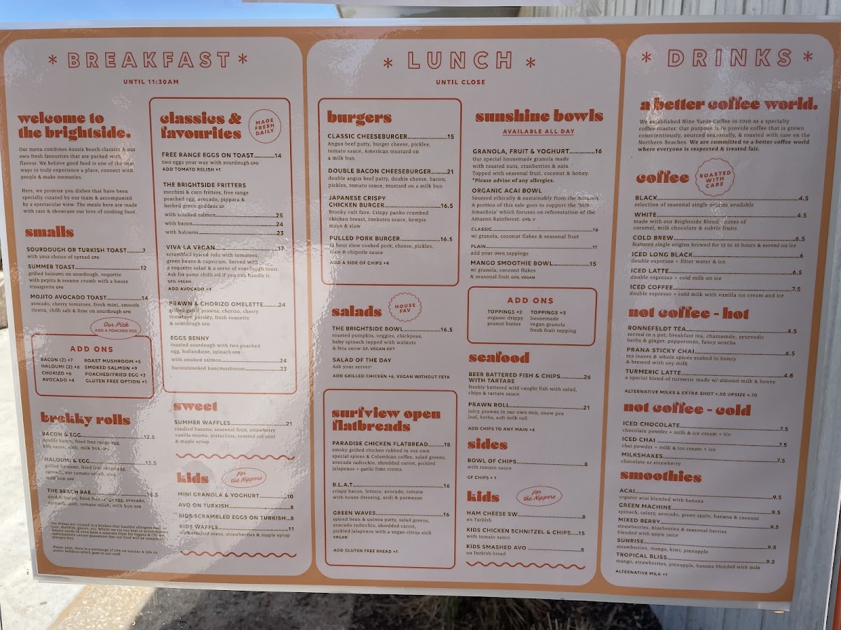 The Brightside Cafe offers a straightforward and inviting menu focused on simple café classics and casual bites, perfect for enjoying a relaxed moment by the beach. Whether you're dropping in for a leisurely breakfast, a light brunch, or an easy lunch, you’ll find fresh, thoughtfully prepared dishes that suit a variety of tastes.