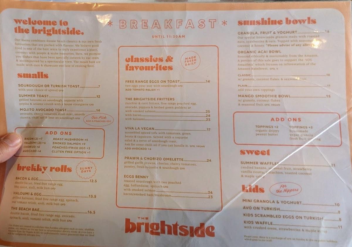 The Brightside Cafe Menu